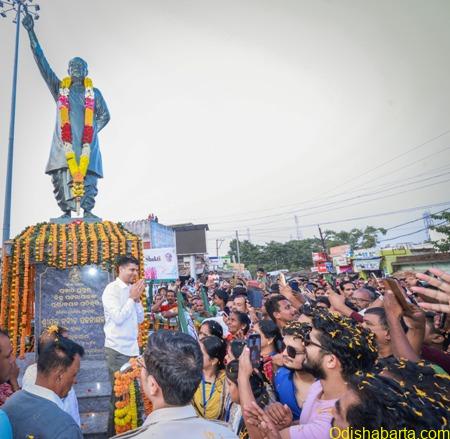 Later, in Hinjilicut, he garlanded the statue of Prabadpurusha Sri Biju Patnaik and paid obeisance.