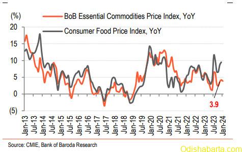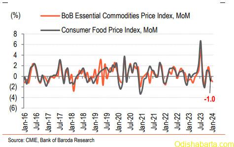 as milk, sugar, tea etc. - For the first 5 days of Feb-24, BoB ECI has fallen by another 0.3% on MoM basis. However, as