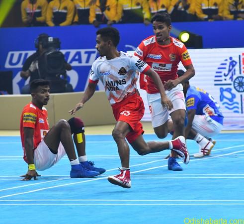 Odisha Juggernauts needed to emulate their first innings defensive show to salvage the match. Their first batch of Dipesh More, Nikhil B and Omkar Sonawane managed a dream run point, leaving Gujarat Giants with five points to get in little over three minutes. Singade though had other ideas.