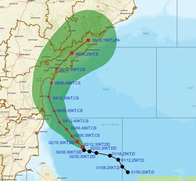 Thereafter, it would move nearly northwards almost parallel and close to south Andhra Pradesh coast and cross South Andhra Pradesh coast between Nellore and Machilipatnam during forenoon of 5th December as a Cyclonic Storm with a maximum sustained wind speed of 80-90 kmph gusting to 100 kmph.