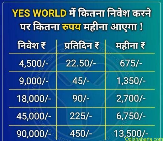 it was found that, YES WORLD through some up-line members is very active in some Districts of Odisha too and they have been using various propaganda tools to persuade people to join in this scheme and earn huge money in a very short time.