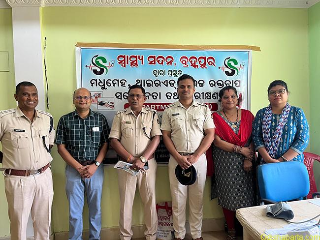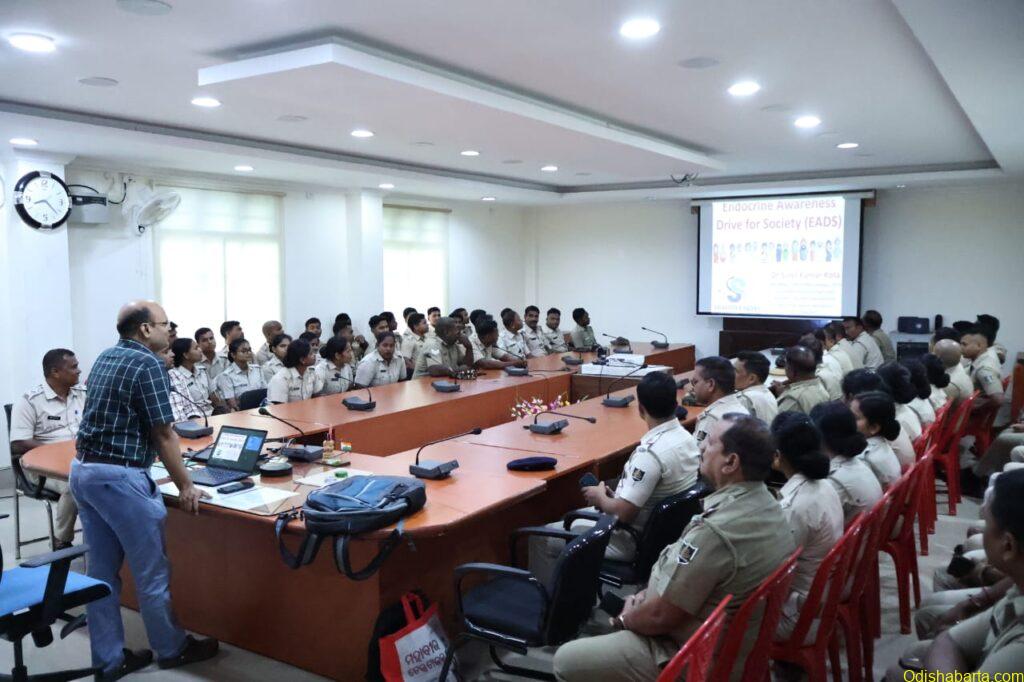 Chhatrapur, 22/05/2025: A health awareness and screening camp was conducted today at the premises of Ganjam District Police, at its Chhatrapur office in association with Swasthya Sadan, Berhampur. Sri Suvendhu Kumar Patra, IPS, SP, Ganjam presided over the session, where Dr Sunil Kumar Kota, Endocrinologist and Diabetes, Thyroid Superspecialist from Swasthya Sadan joined as the Resource person. The camp focussed on life style disorders including Diabetes, Hypertension, Obesity and other hormonal ailments like Thyroid disorders.
