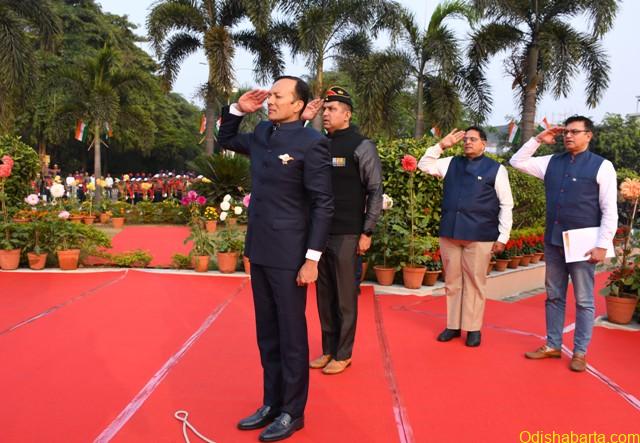Following the flag hoisting, the National Anthem, and the inspection of the contingents and march past, Sri Naveen Jindal addressed the gathering and congratulated the Citizens for upholding the dignity of the Constitution of India consistently for the last 75 years.