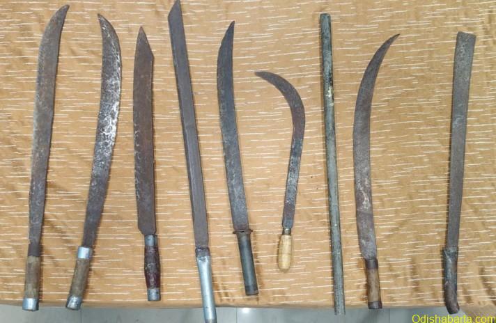 Berhampur(21/05/2025) : Five live bombs,eight swords and Iron rods were discovered on the Kamapalli overbridge near Berhampur Circle jail boundary wall in, sparking panic among locals.