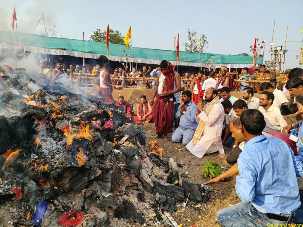 On the way to Puri, the duo kings reached Gopalgarh, 25 km from here, and took rest. The goddess was pleased and said Nalaraja in a dream that Gopalgarh would be his Puja Pitha. On Sukla Chaturdashi of Chaitra, the goddess leaves the Srimandir kitchen and gives darshan just like Jagannath does during the Rath Yatra to her devotees here in the form of burning fire. A few days before Chaturdashi, the goddess is said to appear near the temple and inform the chief priest about the location where the yatra should start. The burning spot is surrounded with heaps of coal till the yatra.