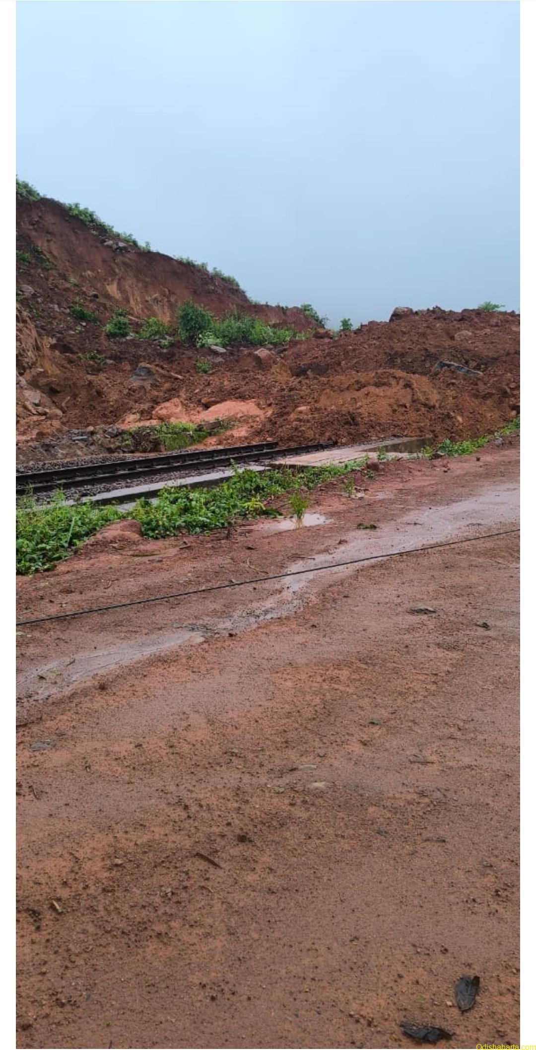 Rayagada, July 2: Due to incessant rains, landslide occurred between Malliguda- Jarati stations in Koraput-Kirandul line of Walair Division, the following train services got affected. The railway officials rushed to site with men and materials and the restoration works are on warfooting.