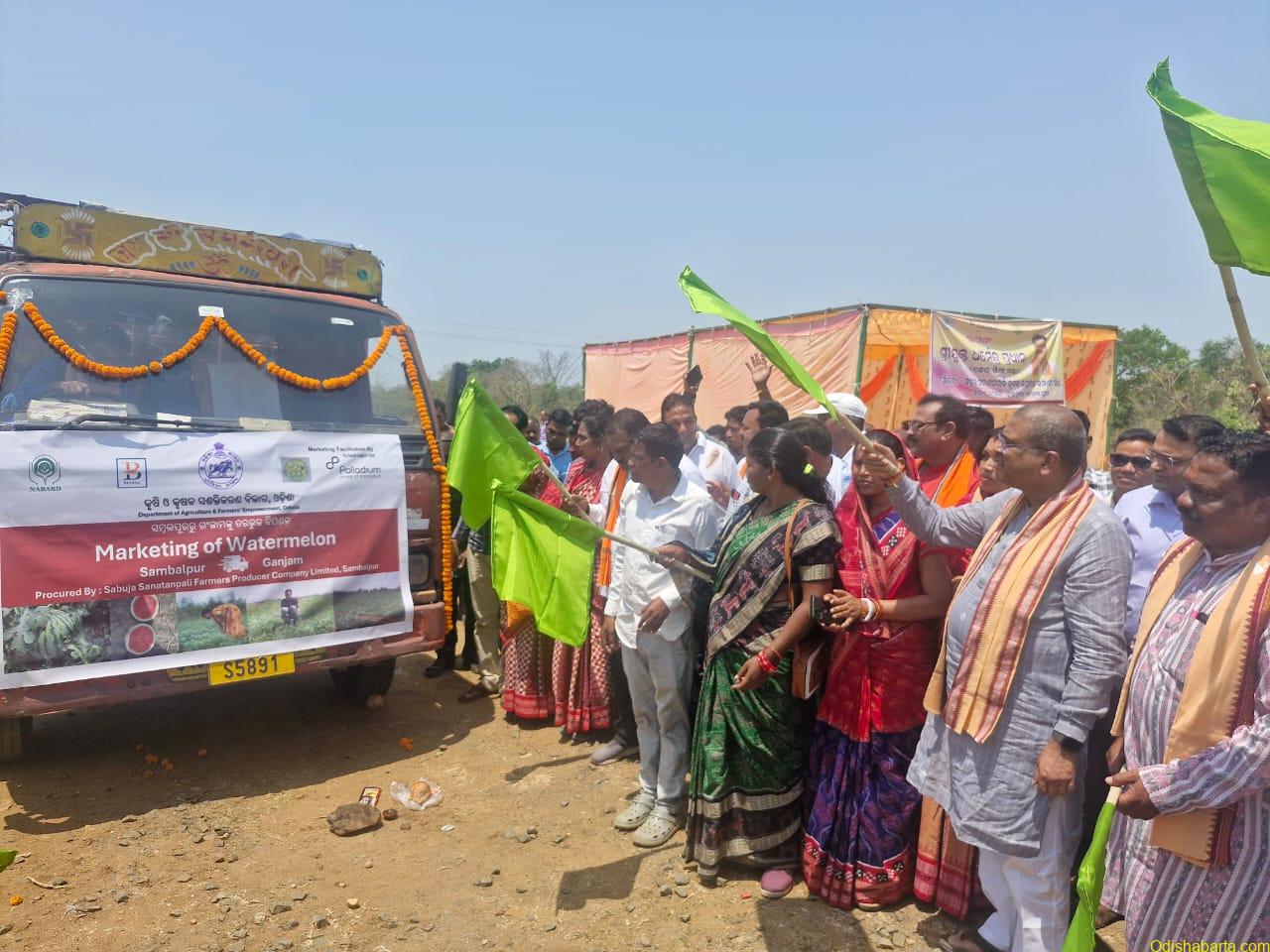On the special occasion, Sri Dhiren Kumar Dash, DDM, NABARD, Sambalpur, said,“I am proud to share that with the support of NABARD and Palladium, the Sabuja Sanatanpali Farmers Producer Company (FPO) was established in 2021. Since its formation, the FPO has significantly improved market access for local farmers. Today, 30 metric tonnes of watermelon were dispatched to Ganjam, flagged by the Hon’ble Union Minister, with a total of around 80 metric tonnes marketed so far through the FPO.”