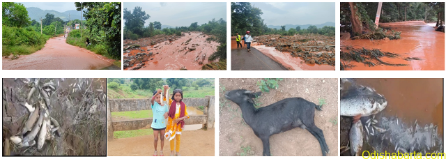 Rayagada (Badal Tah) : Process Water Lake(PWL) of Red mud pond covering 327.62 acres including embankment, filtration unit, toe drain, catchment pond, diversion canal, etc of Vedanta Company in Lanjigarh collapsed during wee hours of 15th September, 2024. Hundreds of acres of agriculture land in the area have been flooded causing tremendous loss to flora and fauna. Tension aroused among local communities, who are mostly tribals, dalits and poor farmers alongside Bansadhara river. The breach has triggered flooding, inundating hectares of agricultural land in Bandhaguda, Bundel, Chhatraur, Turiguda, Bathelima and Basantapada areas in Kalahandi district & Pedipadar, Gouda Chandankhunti, Sibapadar, Kumudabali in Rayagada dist. The affected areas faced a flood-like situation, with farmlands swamped by red mud. The quantum of heavily toxic material that has flown out is estimated at 3 lac cubic metre, ie, 30 crore litres. Local residents alleged that there has been negligence in maintaining the facility by Vedanta which led to its collapse. They allege that improper construction and inadequate upkeep of the infrastructure caused the accident. Locals are also questioning why the facility was built in such an unsafe manner, especially given its proximity to human settlement.